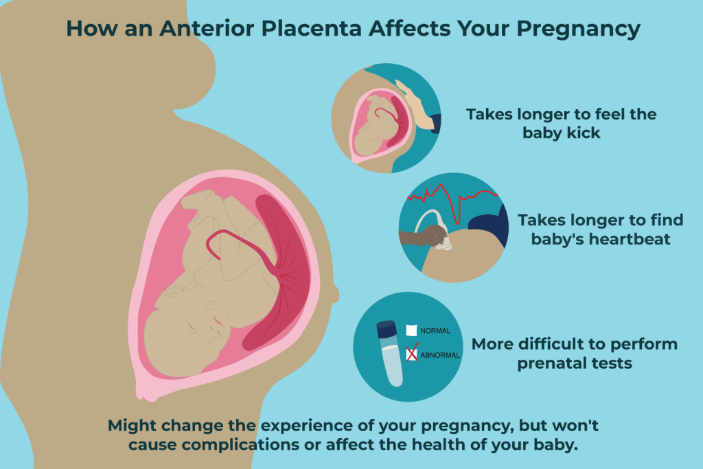 An anterior placenta is when the placenta is in the front wall of the uterus, towards the tummy. It is really a cushion between the baby and the belly wall. This can make it less easy for the mother to feel the movements of the baby, especially in the early stages. It is not related directly to the health or development of the baby.